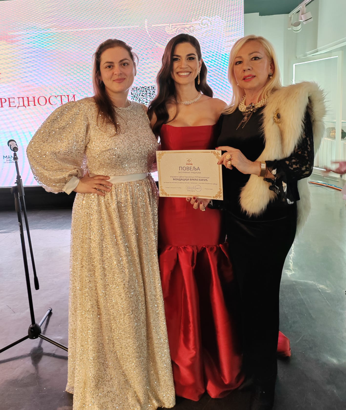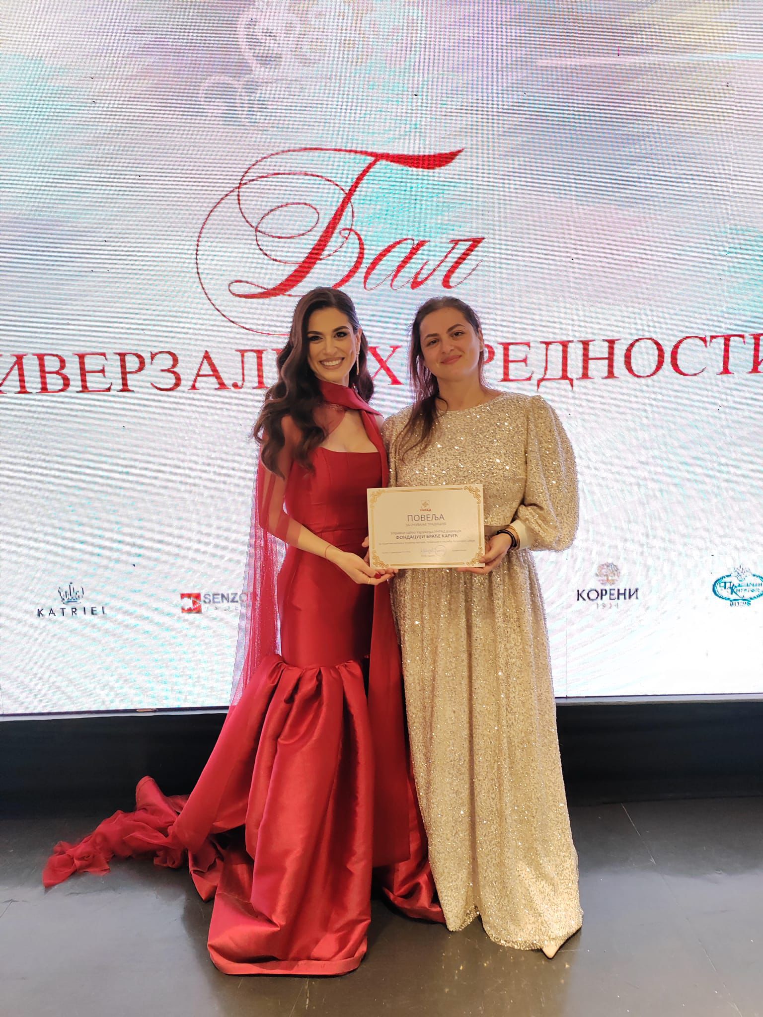 Jedna od dobitnica prestižne nagrade – „Povelja za očuvanje tradicije” – bila je Dana Karić, predsednica Fondacije Braća Karić. Fondacija, koja je prepoznata po svom dugogodišnjem radu na očuvanju kulturne baštine i porodičnih vrednosti, ima nezaobilazan uticaj na društvenu zajednicu. Porodica Karić je poznata po svom trudu i posvećenosti porodici i očuvanju tradicije.
