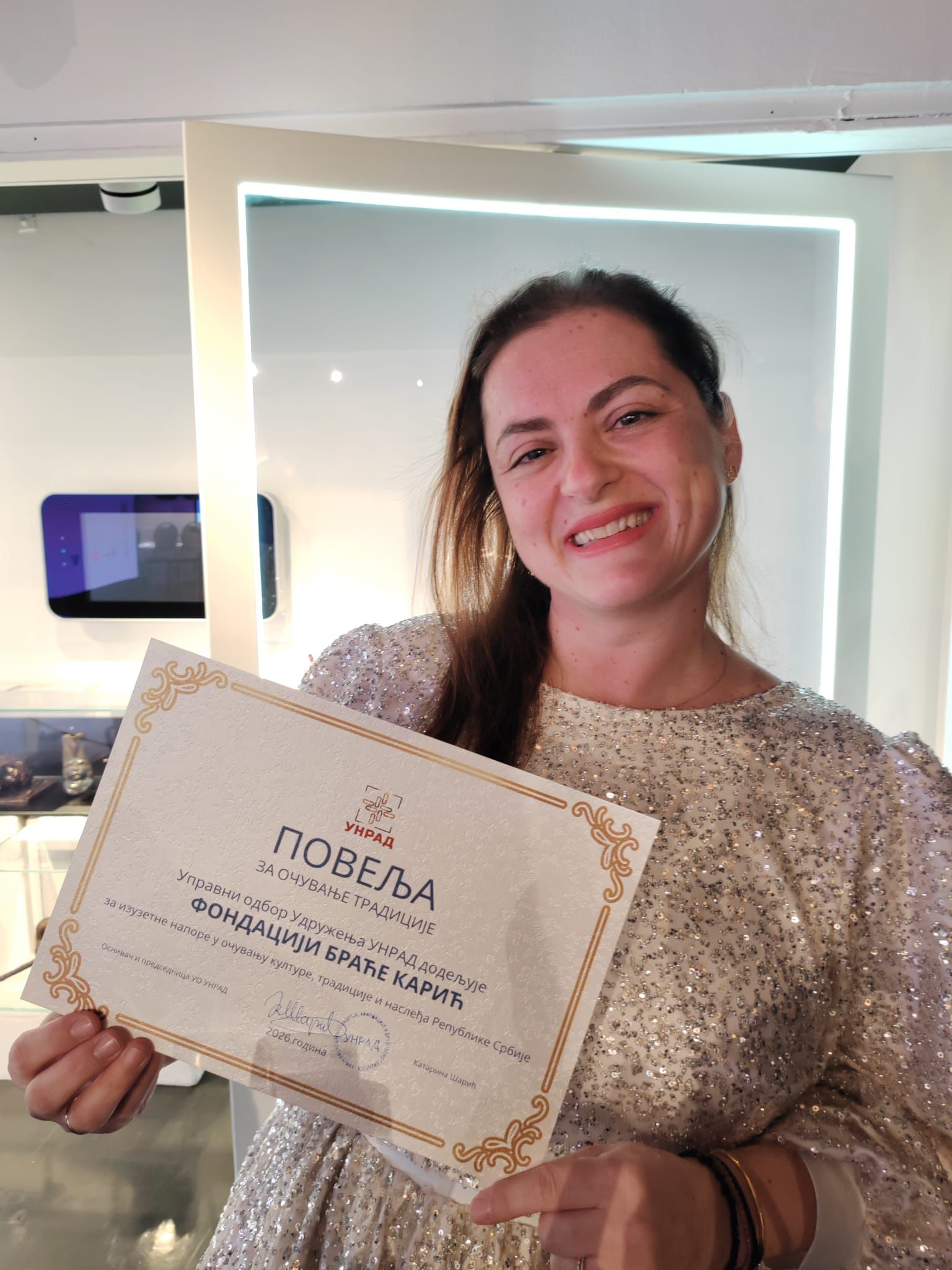 „Ovo priznanje je za nas velika čast, ali i podsticaj da nastavimo da doprinosimo očuvanju tradicije i kulturnog identiteta. Fondacija Braća Karić je institucija koja traje već pola veka, a njena misija je da očuva vrednosti koje čine osnovu naše zajednice i našeg naroda,” izjavila je Dana Karić nakon primanja nagrade.